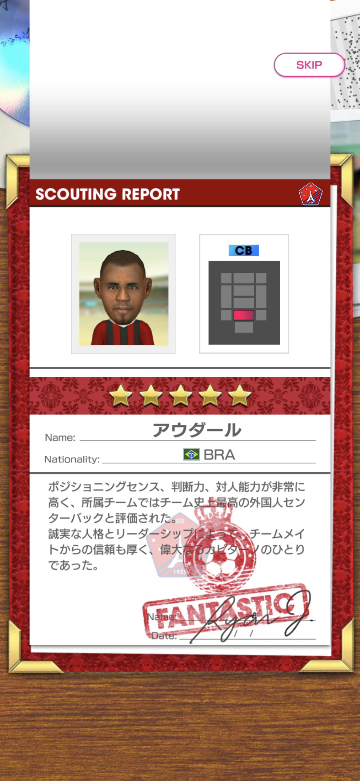 【サカつくRTW】「★5 アウダール(LEGEND)」(ACローマ)(ピックアップスカウト)のステータス