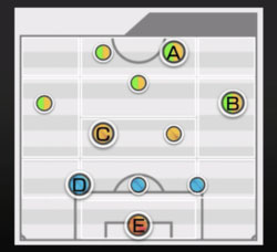 戦術得意度:Lv10 ・戦術指導Lv5 ・消耗戦指導Lv2 ・OFF強化指導 ・DEF強化指導 ・名将のDEF対策指導 ・賢将の戦術対策指導・改 ・消耗戦対策指導Lv2 ・オフェンスバリエーション ・巧みなDEF対策指導 監督ポリシー ・流水 ・エレガントタッチの極意 |