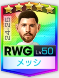 ★5 リオネル・メッシ 24-25 ウイングストライカー系統/クラブチャンピオンスターズ 特徴:右サイドの道導/閃光の騎士/創造の美技/マシンガンラッシュ |