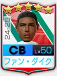 ★5 フィルジル・ファン・ダイク 24-25 ディフェンスリーダー系統/SCリバプール 特徴:緋翼の主将/紡撃の熟達者/デュエルキング/ボールジャマー |