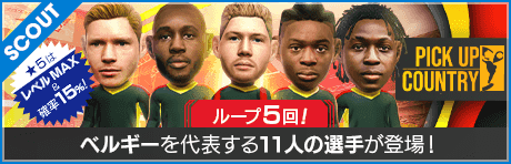 「ケヴィン・デ・ブライネ」や「ロメル・ルカク」などの中央突破を得意戦術とする新★5選手が「レベルMAX(Lv.50)/覚醒2段階達成/各スキル・各能力UP Lv.3達成」で登場するピックアップカントリースカウト(ベルギー)を開催します!